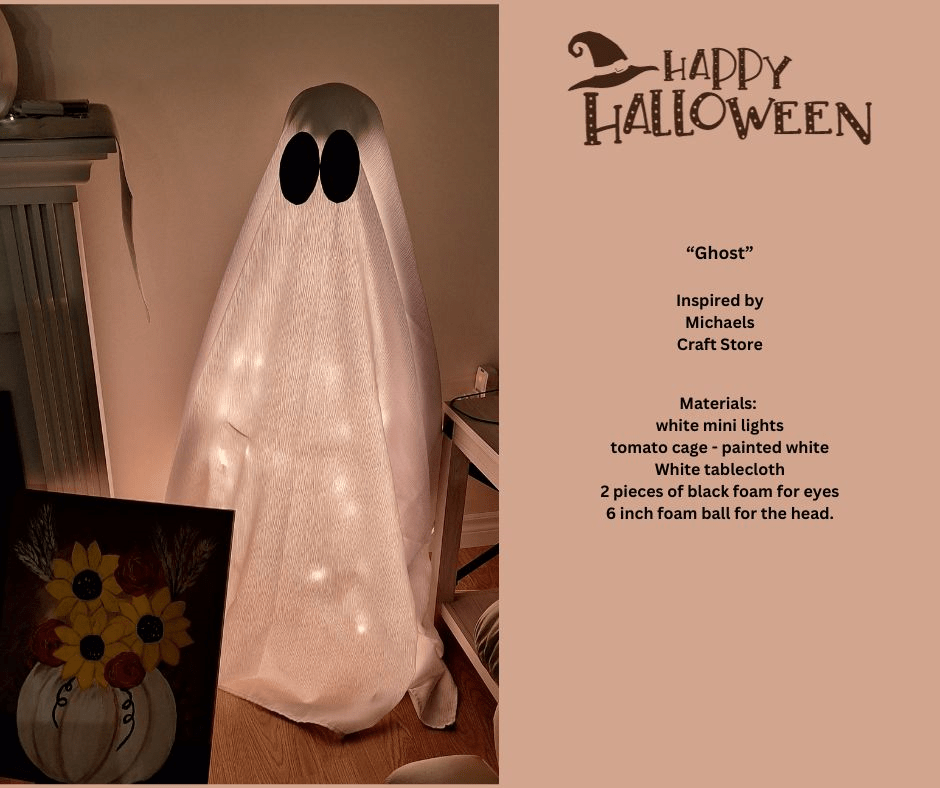 Thank you Michaels craft store for the inspiration to do this Ghost. Go a head and give it a try. Create your own “Friendly Ghost” to add to your Halloween decor.